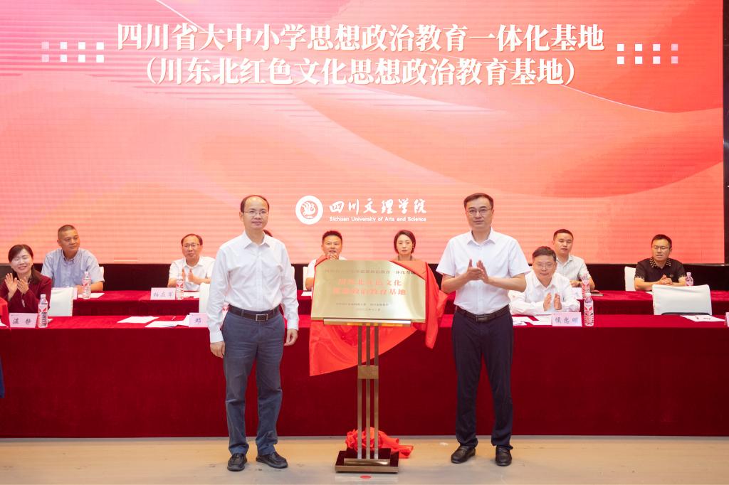 朱兴华宣读四川省大中小学思政课一体化共同体名单、四川省大中小学思想政治教育一体化基地(川东北红色文化思想政治教育基地)名单,宣读成立川东北红色思政研究院文件。