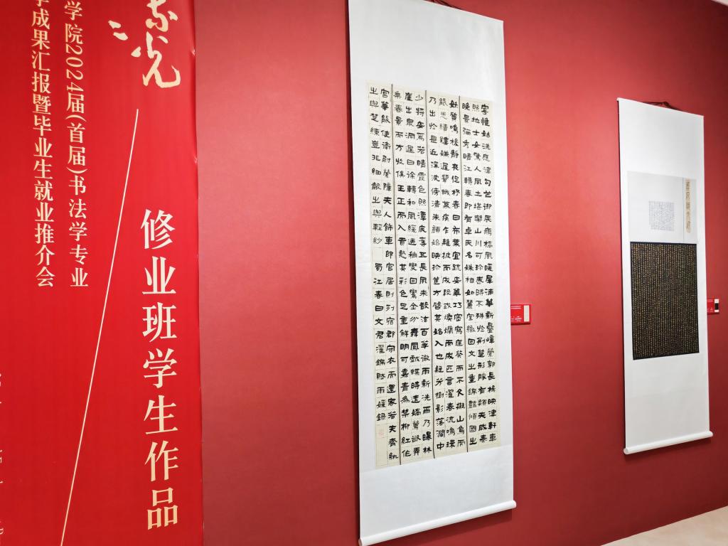 据悉,本次教学成果汇报展时间为6月2日至6月7日,面向社会开放。展品包括万象城书法学专业30名毕业生创作的91件书法篆刻作品和修业班学生的11件作品,另有谢和平、侯开嘉、何开鑫、冯恩旭、刘锁祥、戴文、金玟廷、杨帆、马骏华、刘志超、陈沫吾等书法界前辈、专家和万象城专兼职教师的24件书法作品参加展览,为观众奉献了一场书法艺术盛宴。