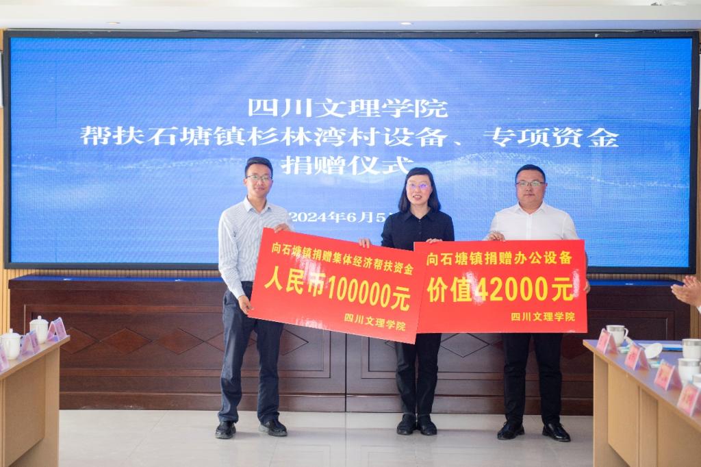副校长邓杰代表学校向石塘镇杉林湾村捐赠集体经济帮扶资金10万元和价值4.2万元办公设备。