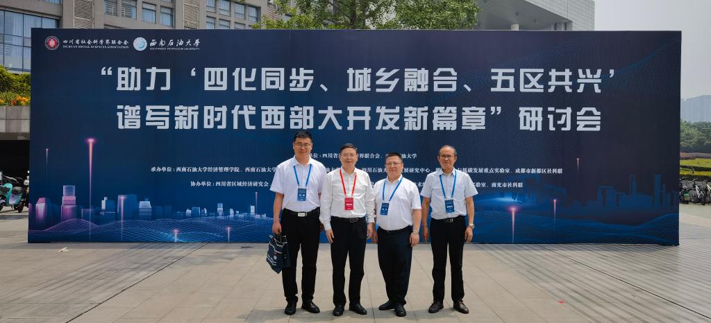 6月14日,由四川省社会科学界联合会、西南石油大学主办的“助力‘四化同步、城乡融合、五区共兴’谱写新时代西部大开发新篇章”研讨会在西南石油大学召开。来自国内高校院所、研究机构等单位的200余位专家学者参加了此次会议。校长侯忠明教授带队,科技处、财经管理学院负责人及建筑工程·生态旅游学院教师随行参会。