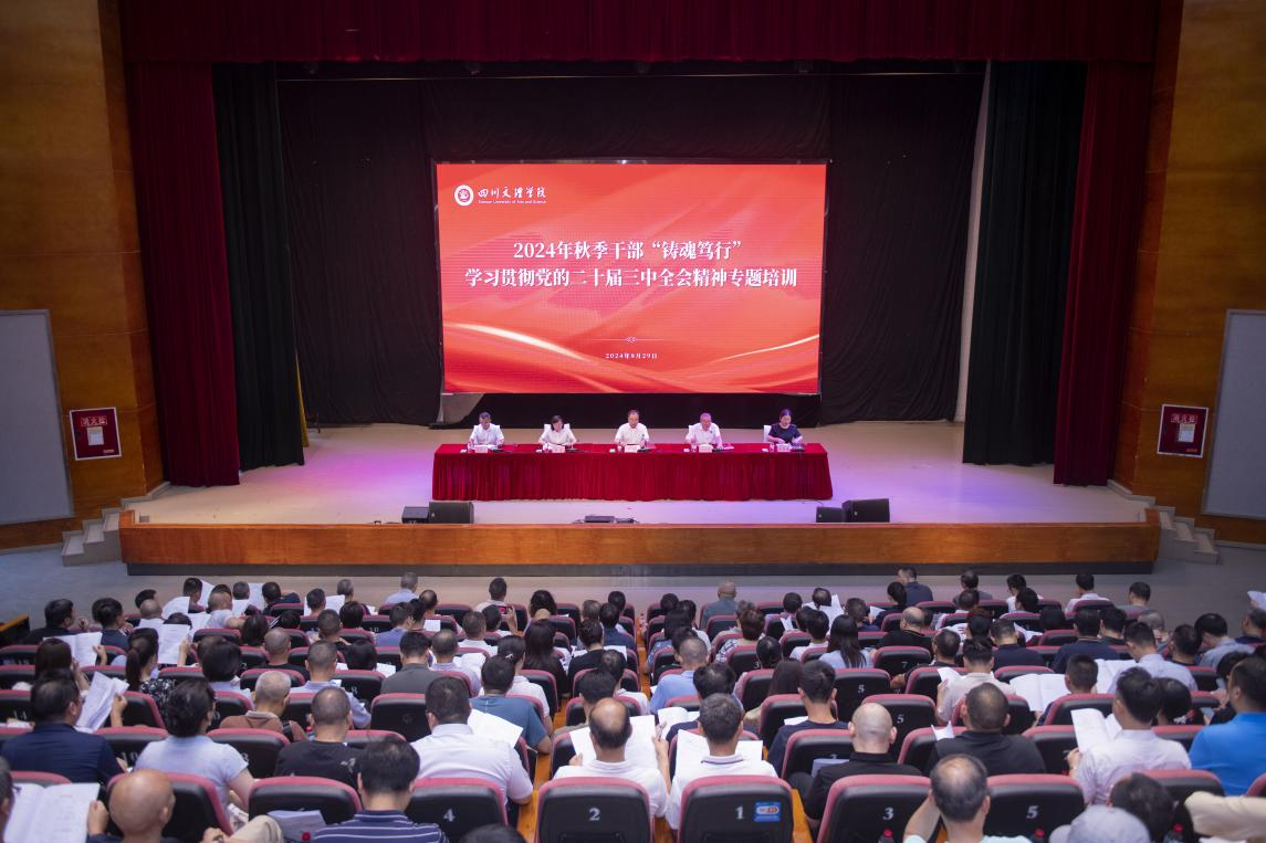 为深入学习贯彻落实党的二十大、党的二十届三中全会精神和省委十二届五次全会精神及学校第二次党代会精神,全面提升干部队伍政治能力和履职能力。8月29日新学期伊始,学校举行“铸魂笃行”培训班专题学习贯彻党的二十届三中全会精神。
