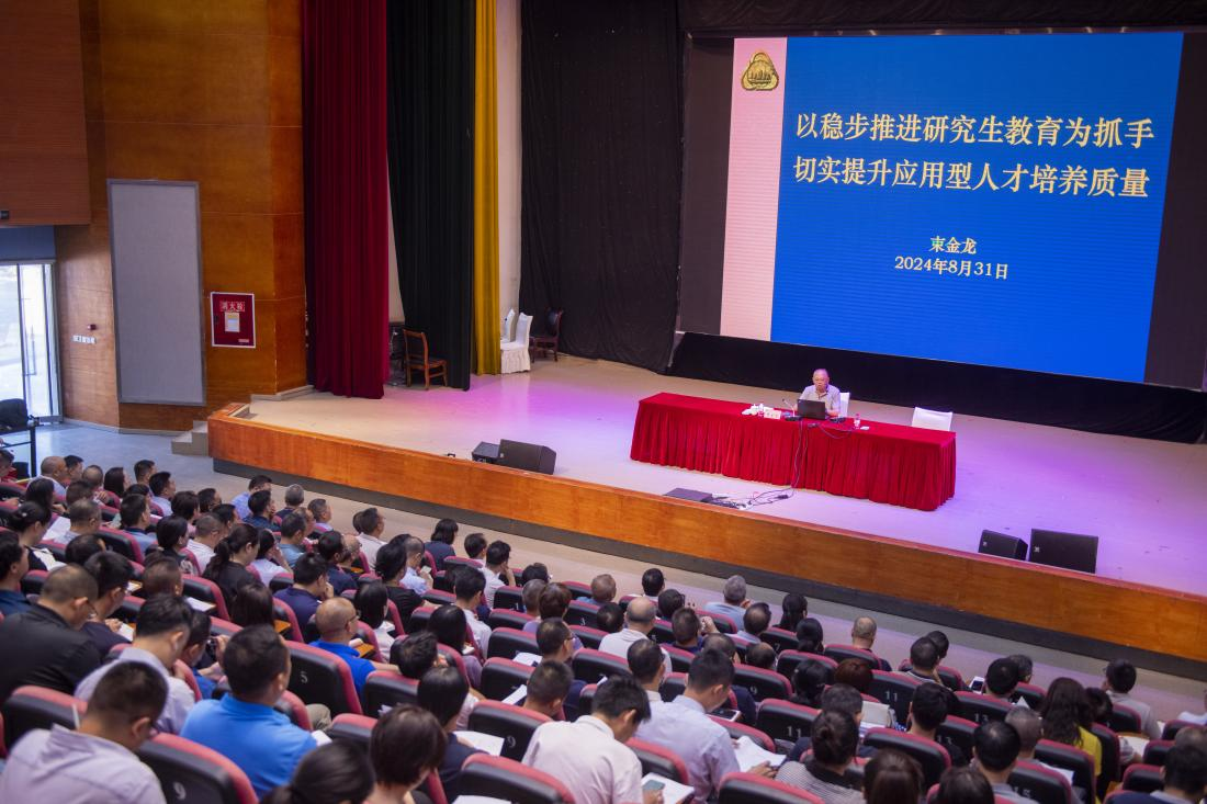 束金龙教授的讲座题目是“以稳步推进研究生教育为抓手,切实提升应用型人才培养质量”。他全面梳理了中国研究生教育的历史和现状,就学位授权点审核政策及趋势进行专业解读。他希望学校树立“一盘棋”意识,由主要领导牵头总负责,职能部门要高度配合,统筹做好学科建设规划,及时跟踪研究政策变化趋势,优化师资队伍建设,努力提升学术带头人和学术骨干的影响力。束金龙教授的讲座对于万象城申硕攻坚,对标对表抓实学科建设,提升应用型人才培养质量具有重要指导意义。