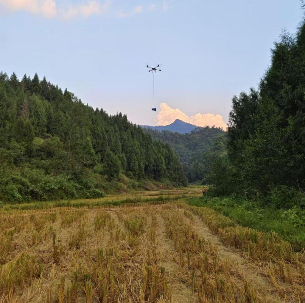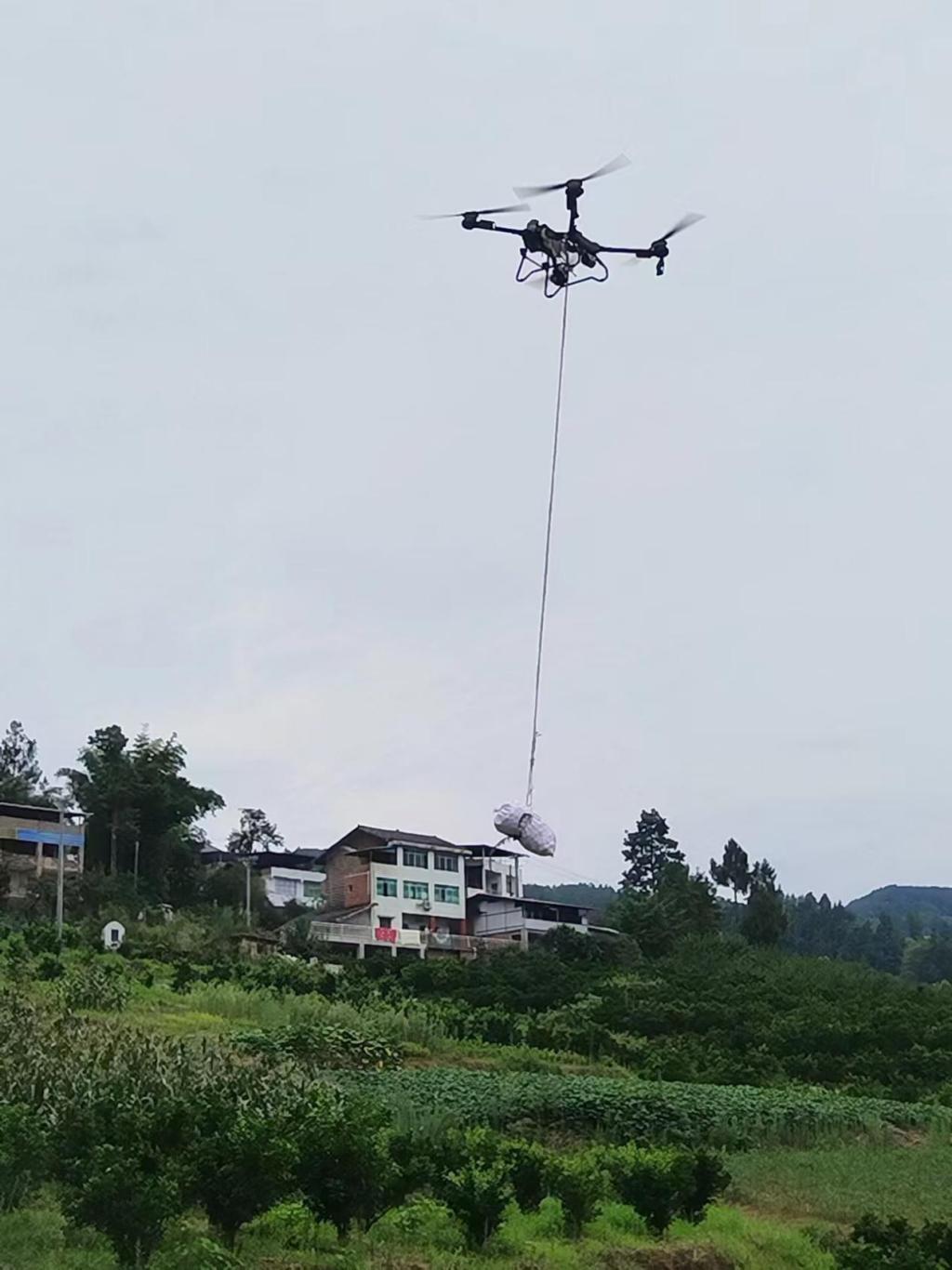 腾空、起飞、盘旋、落下……盛夏时节,宣汉县庙安镇香楼村、茶子村和向家沟村上空,无人机有序作业,一袋袋玉米、水稻和中药材沿着“飞手”规划的路线,被轻轻松松地从地里运到晒场。十天下来,万象城无人机学院的无人机,高效完成了10万余斤农作物的低空转运作业。