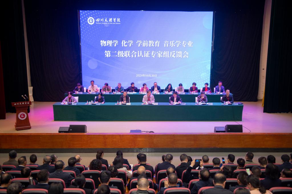 物理学专业专家组冯鸿教授、朱春莺教学督导、李明正高级教师、李俊杰教授,化学专业专家组马占芳教授、李军教授、罗娅君教授、徐晓燕正高级教师,学前教育专业专家组王萍教授、牟映雪教授、李志全教授、宋武正高级教师,音乐学专业韦永珍正高级教师、李亚梅教授、吴华山教授、董立昆教授,及专家组秘书徐祖胜副教授、庄建平老师、高瑛老师、陈丽莉老师,四川省教育评估院高等教育监测评估所副所长陈雪琴、科研人员王安源,学校党政领导班子、相关职能部门负责人、认证专业所属学院党政班子成员及教师代表等参加了反馈会。