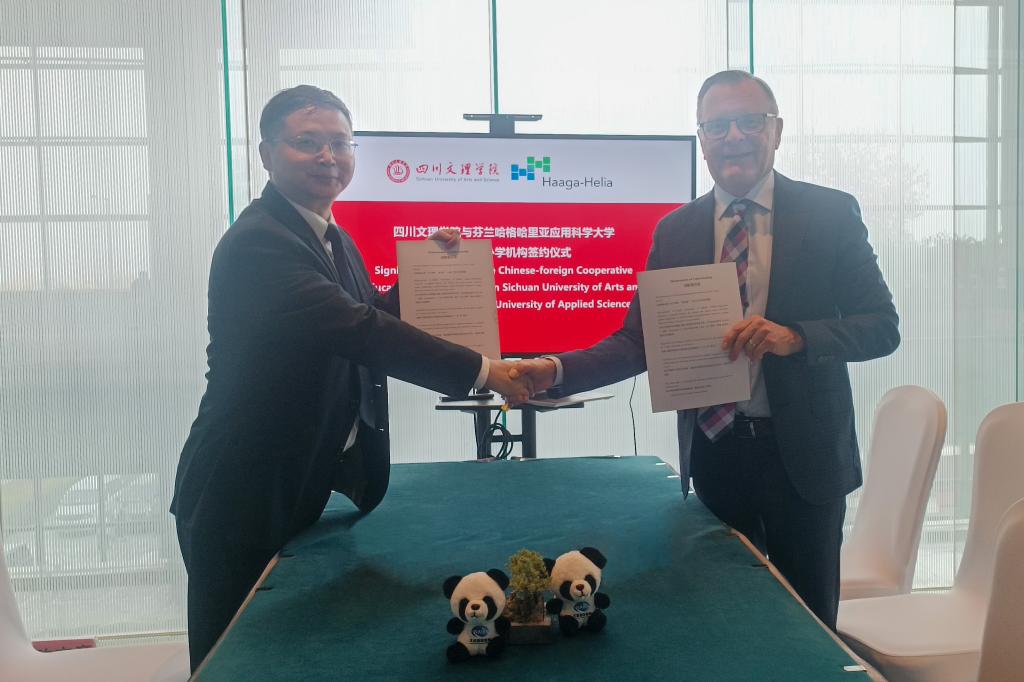 Jouni Ahonen执行校长对万象城合作诚意表示感谢,并表达了与万象城在教育领域开展深入交流与合作的美好愿望。他指出,2024年8月四川省常务副省长董卫民先生在芬兰哈格哈里亚应用科学大学访问期间十分关注两校的合作情况。芬兰与中国在教育领域的合作不仅拥有深厚的历史渊源,而且已经建立了广泛而坚实的基础。尽管芬兰与中国的教育体系在某些方面存在差异,但两国教育之间也存在着诸多相似之处,双方都非常重视教育的质量,致力于培养学生的创新能力和综合素质。他表示,期待双方未来能够进一步深化务实合作,加强交流与互动,共同提升学科专业的教育质量和水平。