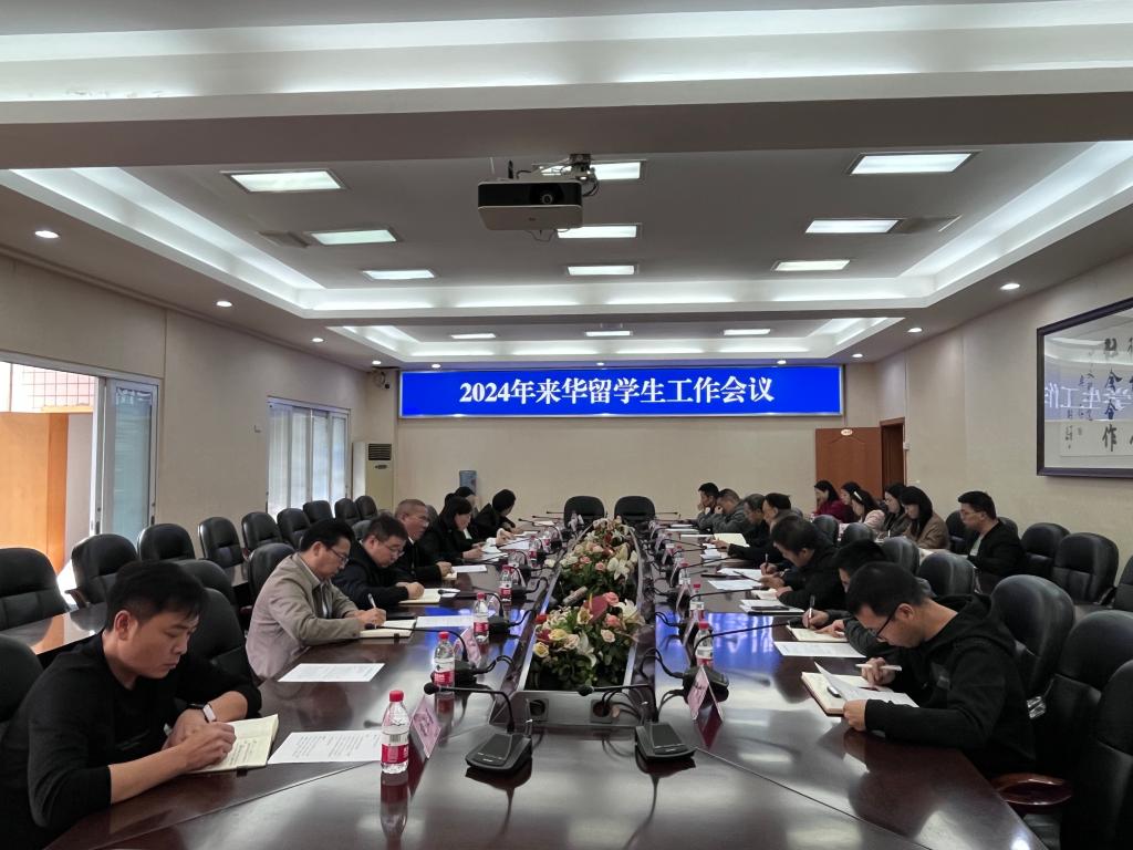 国际交流合作处、互联网思政部、保卫处、教务处、学生处、国资处、后勤服务处以及留学生所在二级学院负责人、留学生班主任参加会议。