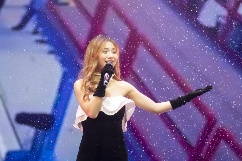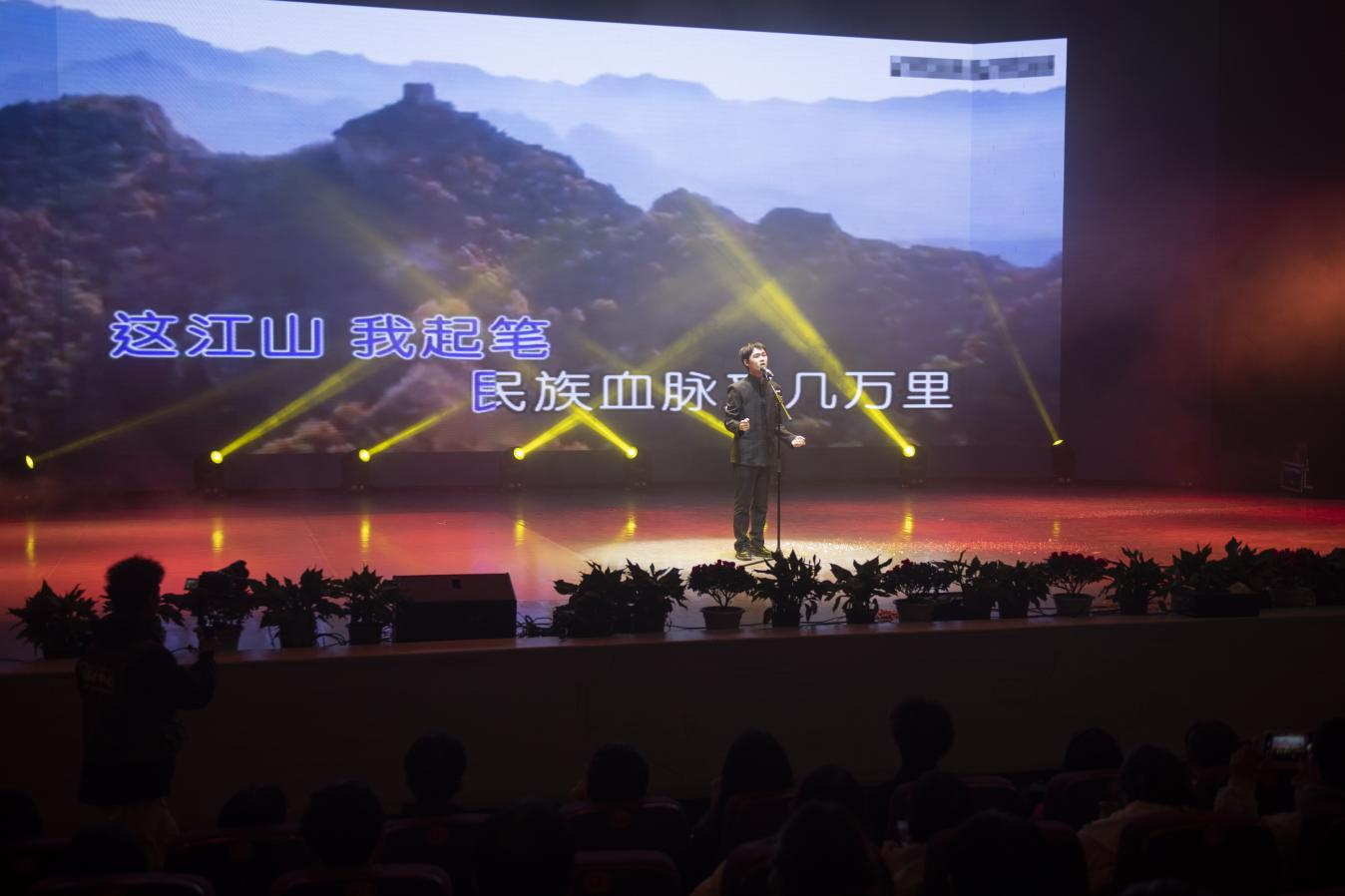 音乐与演艺学院青年教师陈娟登台献唱《绣红旗》,以过硬专业能力,饱含深情的演唱,唱出对祖国河山的热爱,将现场气氛烘托上了高潮,引起师生共鸣,赢得阵阵掌声。