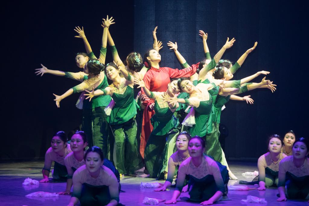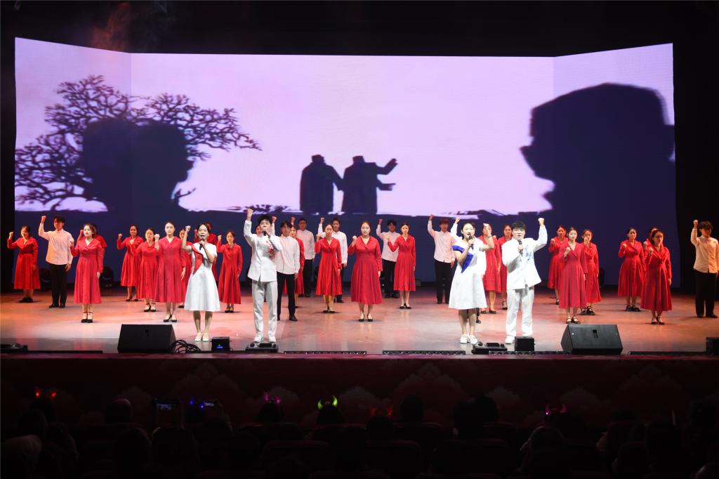 第一篇章以“温暖”为主题,展现了学院师生之间的深情厚谊和对祖国的热爱。舞蹈《待到山花烂漫时》以优美的舞姿和绚丽的灯光效果,将观众带入了一个如诗如画的意境中,表达了人们对美好生活的向往和追求。川剧变脸《说脸谱》表演者以精湛的技艺,将一张张脸谱变幻得栩栩如生,赢得了现场观众的阵阵掌声。学校离退休教师带来的合唱《祖国不会忘记》,将晚会推向高潮,表达了对祖国的无限热爱和祝福,他们的激情与活力感染了每一位在场的观众,体会到岁月的沉淀与温情。