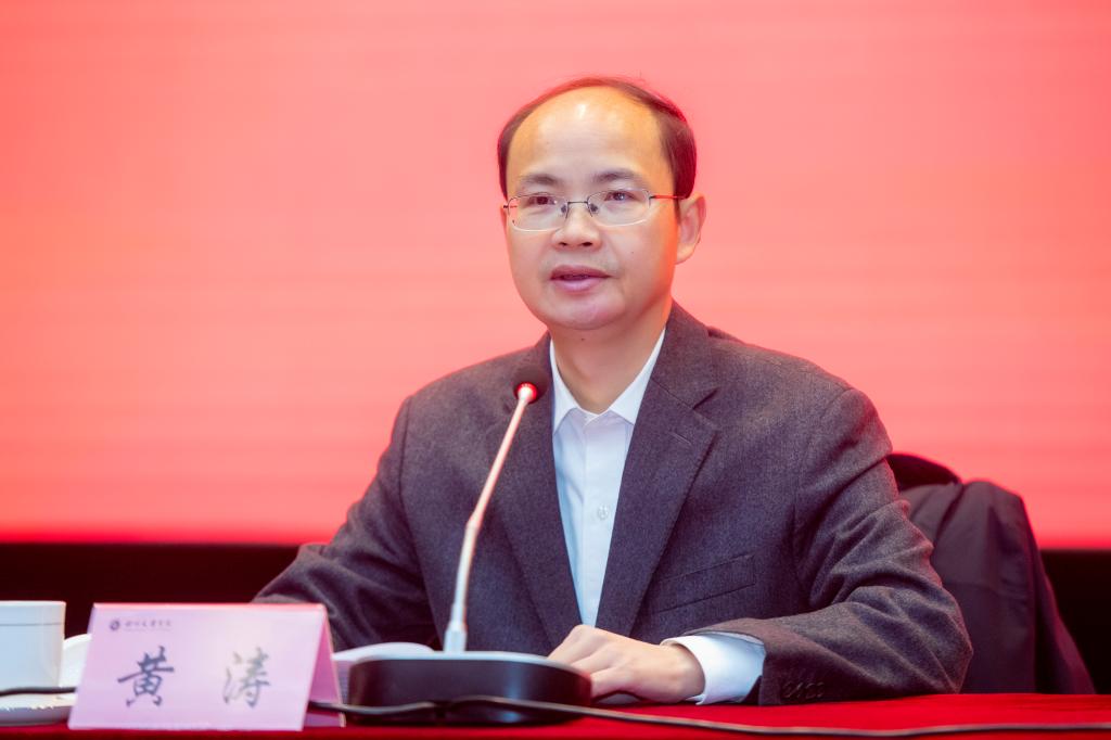 黄涛强调,近年来学校以新发展理念引领高质量发展,推进系统性变革、强化内涵式发展、引领格局性变化,取得了系列标志性成果,学科建设实现新跨越,办学格局实现新拓展,人才培养实现新进步,科技创新实现新跃升,人才引培激发新活力,开放办学呈现新气象。全体干部要深刻认识到当前学校事业发展面临的机遇和挑战,坚持解放思想、直面挑战,以更大的勇气和担当逐一破解制约高质量发展的困难和问题,全面推动学校事业发展再上新台阶;要充分借鉴吸收“双一流”大学先进的办学理念和举措路径,坚持学思结合、学以致用,创新工作方法,在学思践悟中提升政治能力和业务水平;要勇于干事担事,坚持观大势之变、谋全局之远、破改革之困,思使命之“新”、聚创新之“力”、强担当之“能”,不断提高驾驭复杂局面、破解疑难问题的能力,知难而进、迎难而上,跑出新时代学校内涵式高质量发展的“加速度”。