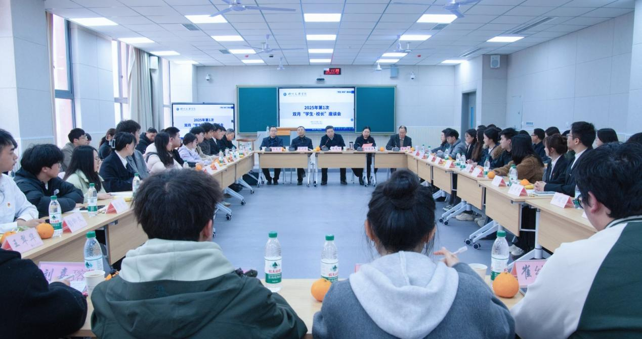 为进一步凝聚全校师生共识、汇聚发展合力,践行“学生主体,教师主导”办学理念,构建学生与校领导直接对话的常态化机制,充分激发学生发展内生动力,2月28日,学校以“人工智能背景下青年大学生的学习与生活”为主题在东区B206教室召开双月“学生·校长”座谈会。校长侯忠明出席并主持座谈会,副校长程碧英、苟兴龙、熊兴中、陈光平,相关职能部门负责人,各二级学院党委书记代表、院长代表、党委副书记代表、教师代表、辅导员代表,以及学生代表共同参加了此次会议。