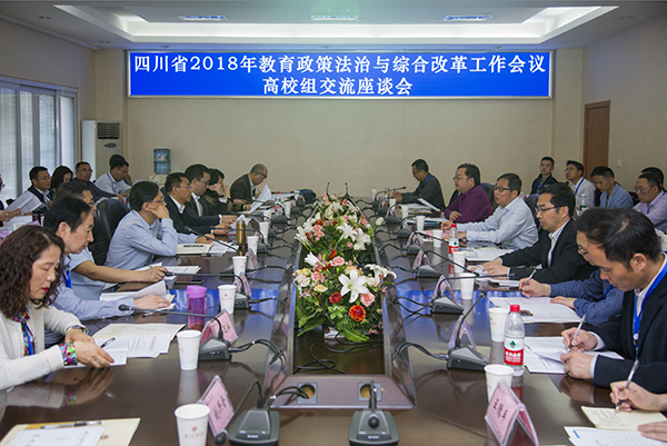 4月9日,四川省2018年教育政策法治与综合改革工作会议高校组交流座谈会在万象城举行。省委教育工委委员、省教育厅副厅长张澜涛出席会议并讲话。校长刁永锋致欢迎词,省教育厅法规综合改革处处长陈胜主持会议。