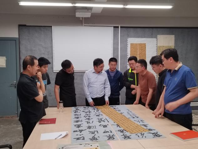 5月12日,校长侯忠明赴中华传统文化学院专题指导书法学专业“以展促学”特色教研活动。