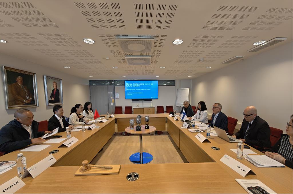 芬兰哈格哈里亚应用科学大学副校长,芬兰应用型高校秘书长Jouni Ahonen与侯忠明一行进行了深入的交流座谈。访问期间,副校长Jouni Ahonen回顾了与万象城前期交流合作的发展共识,同时也分享了四川省相关领导访问该校时提出加强与四川省高校务实合作的期望。座谈会上,副校长Jouni Ahonen介绍了芬兰高校在专业建设、人才培养、学科建设的优势,双方聚焦中外合作办学进行了专项探讨,就中外合作办学专业的遴选、人才培养模式的融合以及申报合作办学的相关筹备事宜等达成共识。