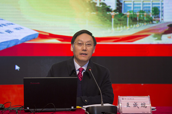 王成端要求全体干部要充分认识习近平总书记来川视察重要讲话的重大意义,切实把学习宣传贯彻习近平总书记重要讲话精神作为当前和今后一个时期的重大政治任务,一是要深刻领会习近平总书记重要讲话的精神实质和核心要义,立足工作大局,结合2018年学校党政工作要点部署各项工作。二是要深入思考、认真谋划,切实用习近平新时代中国特色社会主义思想指导学校工作,学思践悟、融会贯通、学以致用。三是要围绕治蜀兴川部署,深化体制机制和“四化一体”人才培养模式改革,做实做细“一科多考”改革,激发发展活力,提升学校贡献水平。四是要深入推进深度贫困县精准扶贫,发挥教育在脱贫攻坚中的先导作用,促进教育公平和保障民生。五是要加快依法办学进程,不断增强学校治理能力和治理体系现代化。六是要全面加强学校党的建设,强化“四个意识”,坚决维护以习近平同志为核心的党中央权威和集中统一领导,把思想和行动统一到总书记的重要讲话精神上来,把总书记的关怀厚爱和殷切希望转化为引领学校科学发展的思路,转化为推动转型发展的强大动力,以有力的举措、扎实的工作、顽强的韧劲,驰而不息地开创学校改革创新的新局面。