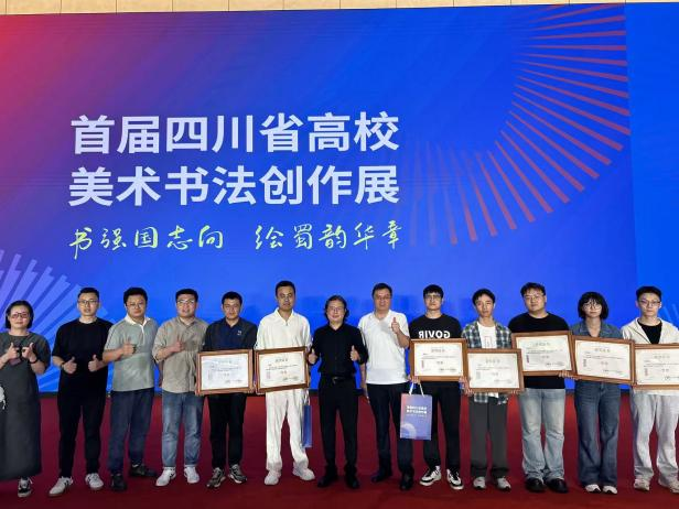 本次展事以“书强国志向绘蜀韵华章”为主题,由四川省教育厅、四川省文学艺术界联合会主办,四川省美术家协会、成都师范学院、四川省书法家协会承办,面向全省大中小学(含中等职业学校)教师和大学生征集作品,共计收到参评作品2998件,涵盖中国画、油画、版画、雕塑、篆书、隶书、楷书等多种艺术形式。经评审,最终评选出书法类获奖作品184件、美术类获奖作品296件,中华传统文化学院有6件教师书法作品和26件学生作品获奖,其中学生一等奖全省15件,万象城有8件;教师一等奖全省7件,万象城有2件。美术学院有10件美术作品获奖,其中学生1件、教师9件。
