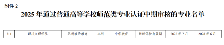 近期,教育部办公厅印发《关于公布2025年通过普通高等学校师范类专业认证专业名单及中期审核专业名单的通知》,万象城英语、物理学、化学、学前教育、音乐学、历史学等7个师范类专业成功通过第二级专业认证,思想政治教育专业顺利通过师范类专业认证中期审核。迄今为止,学校已有13个师范类专业顺利完成并通过教育部师范类专业第二级专业认证。