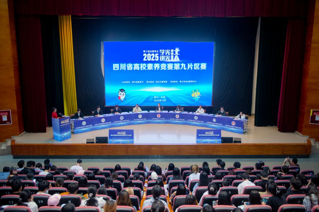 10月16日上午,第十届全省学生“学宪法 讲宪法”活动法治素养竞赛高校第九片区赛在万象城多功能厅举行。来自西华师范大学、内江师范学院、四川职业技术学院、达州职业技术学院等9所高校的参赛选手共同参与了这场法治知识与素养的较量。