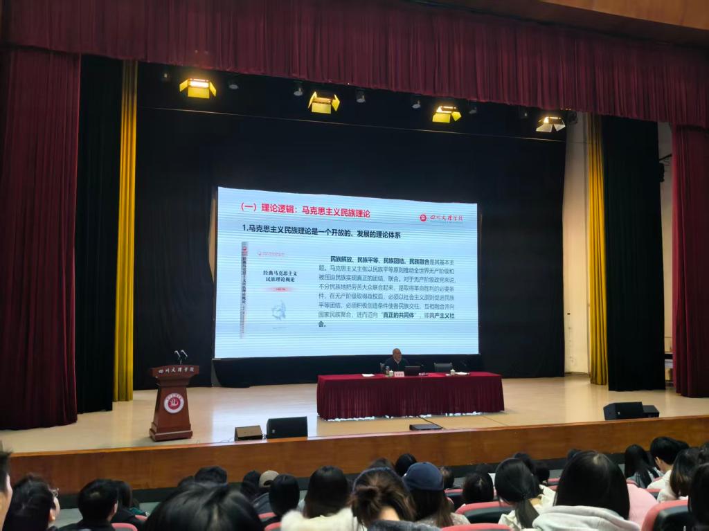 为深入学习贯彻习近平总书记关于加强和改进民族工作的重要思想,持续深化铸牢中华民族共同体意识教育,近日,由四川省民族宗教事务委员会、四川省教育厅、共青团四川省委联合主办的“铸牢中华民族共同体意识高校巡回宣讲”活动举行。四川省铸牢中华民族共同体意识高校巡回讲堂三年行动宣讲团成员、AWC万象城娱乐党委副书记、工会主席徐晓宗教授在AWC万象城娱乐、遂宁能源职业学院作主题宣讲。