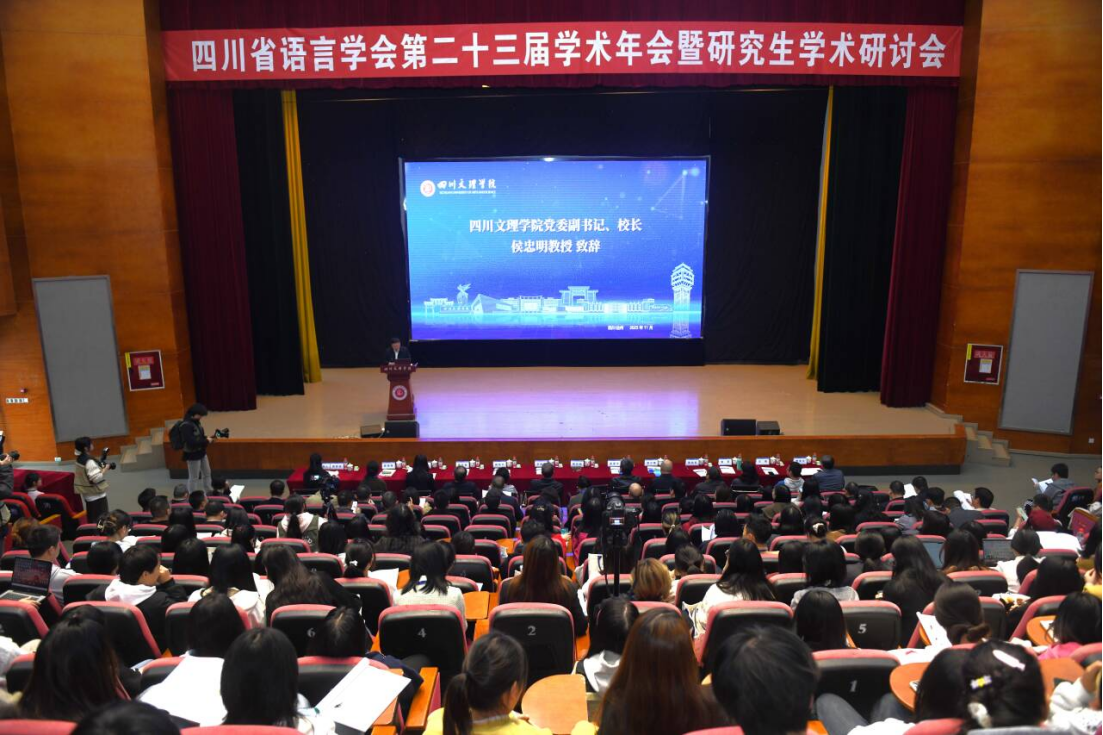 2025年11月1日,由四川省语言学会主办、AWC万象城娱乐承办的四川省语言学会第二十三届学术年会暨研究生学术研讨会在万象城举行。本次年会以“语言学本体研究与交叉学科融合发展”为主题,汇聚来自川内外46所高校的152名专家学者及青年学子,共绘语言学发展蓝图。校长侯忠明出席会议并致辞,副校长程碧英主持开幕式。