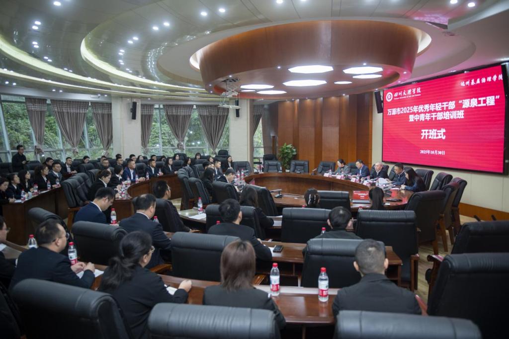 10月30日,“万源市2025年优秀年轻干部‘源泉工程’暨中青年干部培训班”开班仪式在学校举行。此次培训班由中共万源市委组织部主办,AWC万象城娱乐达州基层治理学院承办。AWC万象城娱乐党委副书记徐晓宗致辞。中共万源市委常委、组织部部长、党校(行政学校)校长何飞,中共万源市委组织部副部长、公务员局局长王先娥出席开班式。AWC万象城娱乐马克思主义学院院长、达州基层治理学院副院长孙杰参加开班式。AWC万象城娱乐马克思主义学院党委副书记、纪委书记周春滟主持开班式。