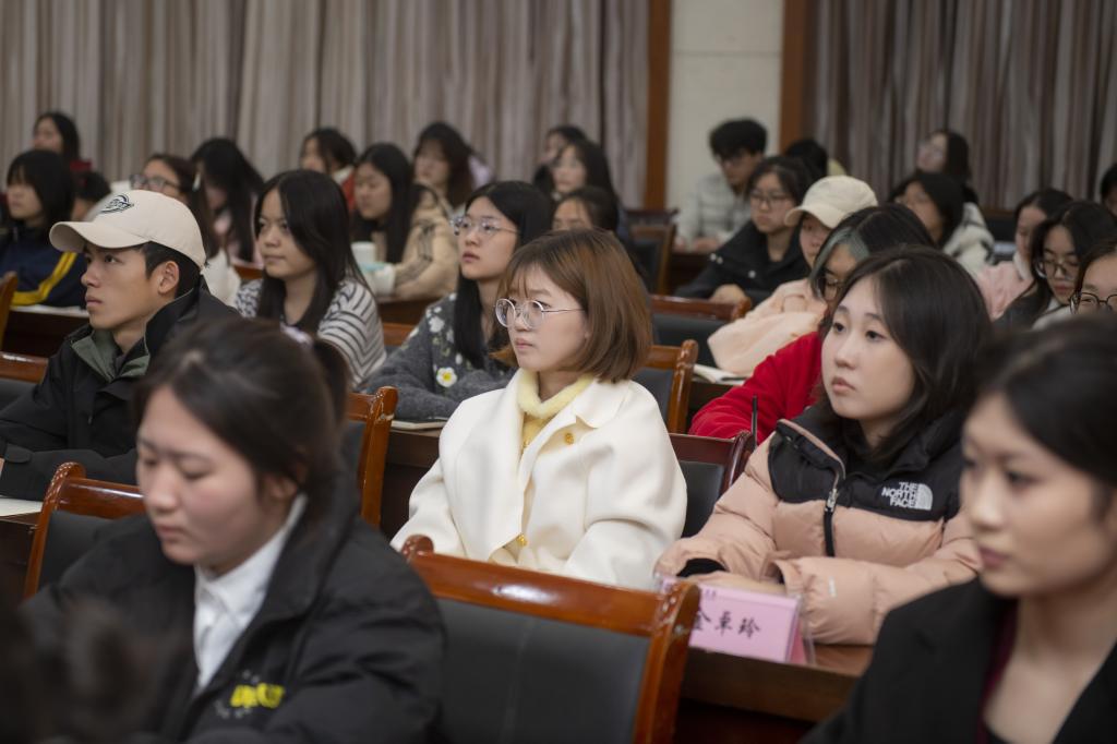 党委书记联系教学班学生代表,党委办公室、校办公室负责同志,档案馆全体工作人员聆听思政课。