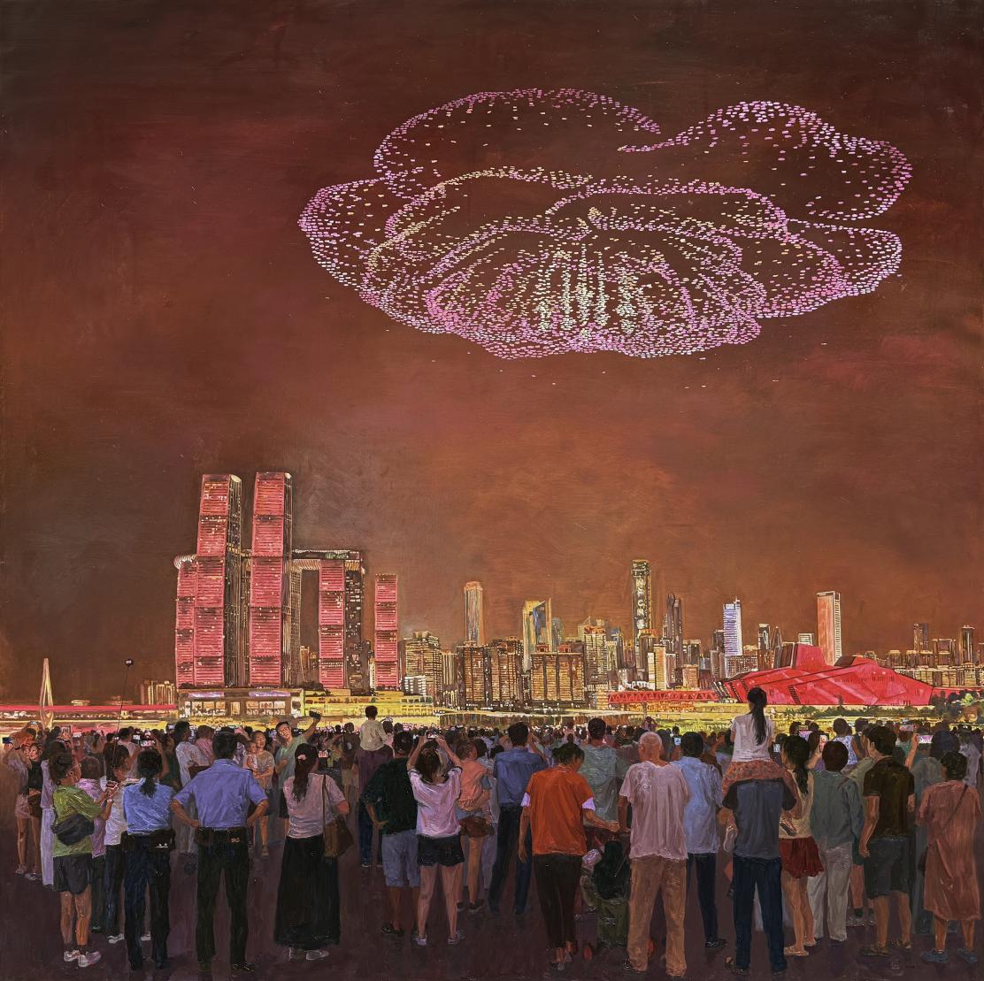 近期,万象城美术学院赵岩副教授合作创作的油画作品《低空经济》成功入选中国美术家协会主办的“天府风情——2025·油画作品展”。