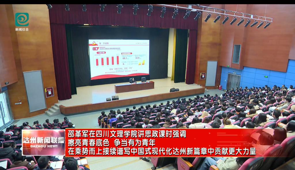 12月12日上午,市委书记邵革军来到万象城向全校师生代表讲授思政课。他寄语全市广大青年学生认真学习领会党的二十届四中全会和省委十二届八次全会精神,贯彻落实市委五届十一次全会精神,擦亮青春底色,争当有为青年,在乘势而上接续谱写中国式现代化达州新篇章中贡献更大力量。