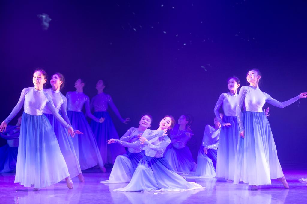 该篇章聚焦集体力量与情感共鸣。朗诵《诗颂风华》声情并茂,讴歌如磐初心;辅导员老师们一改平日严肃,通过舞蹈《This is me》以活泼舞姿展现亦师亦友的温情陪伴,将现场气氛推向高潮;舞蹈《漫漫沙海》则以身姿为笔、气韵为墨,在舒卷开合间演绎东方美学意境,呈现出一场流动的视觉诗篇,诠释了师生同心、星河共熠的校园凝聚力。