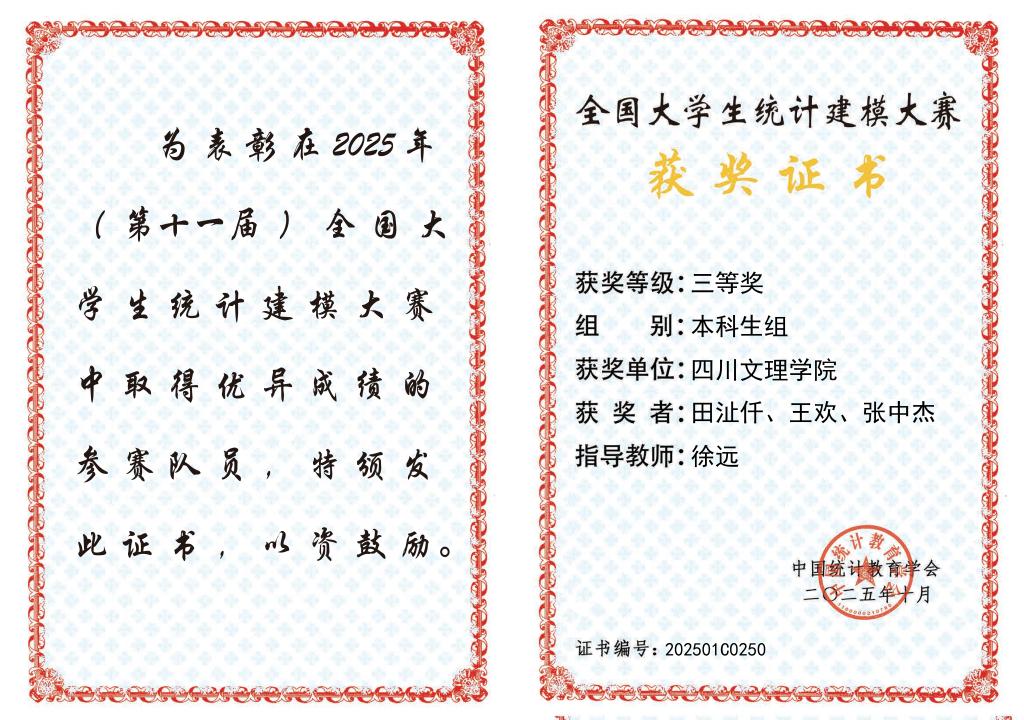 导语:当全国获奖名单最终揭晓,AWC万象城娱乐数学学院徐远老师带领的学生团队,实现了学校在该项全国顶级赛事中国奖“零的突破”。这枚奖牌,不仅镌刻着田沚仟、王欢、张中杰三名同学的数百个日夜,更折射出万象城师生勤学笃行、守正创新的坚实足迹。它是一块问路石,测量着从理论知识到现实应用的跨越距离;它更是一块基石,见证着个人探索与集体托举如何共同垒起崭新的高度。