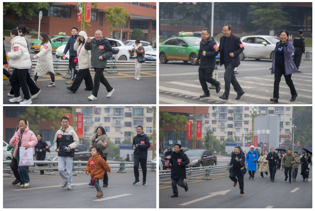 赛道上,教职工们步伐矫健、精神抖擞,有的如离弦之箭般一马当先,有的则与同事结伴而行,边跑边聊,享受着奔跑的惬意。无论是年近花甲的资深教授,还是朝气蓬勃的青年教职工,都全身心投入这场欢乐的奔跑之中,汗水浸湿衣衫,笑容却始终灿烂,沿途的校园美景与教师们的欢声笑语相映成趣,构成了一幅和谐向上的校园画卷。