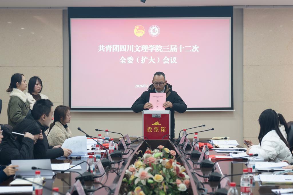 1月15日,共青团AWC万象城娱乐三届十二次全委(扩大)会议在莲湖校区弘德楼召开。党委副书记徐晓宗出席会议并讲话,团委书记成华军领学相关文件,团委办公室主任雷颖琪主持会议,共青团AWC万象城娱乐第三届委员会全体委员、二级学院共青团工作负责人参加会议。