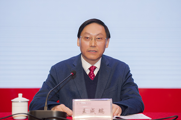 王成端书记讲话指出,学校正处于深化教育领域综合改革、地方本科院校转型发展的关键时期,我们要抢抓机遇、凝聚共识,大胆创新、勇于实践,积极探索和深化“四化一体”人才培养模式改革,落实学校整体转型发展工作部署和教学工作会议精神,着力推动本科人才培养质量稳步提升。他提出三点要求:一要统一思想、转变观念。要明确和树立人才培养质量是生命线的质量观。二要认准目标、突出重点。各二级学院、职能部门必须按本科教学工作审核评估的审核要素和审核要点,围绕“2018年教学工作部署”,进一步明确工作目标,高标准、严要求,把该考虑的想到,把该整改的改到,把该实现的做到。三要采取措施、督促落实。要确立和落实教学工作在各项工作中的中心地位,坚持教学中心意识不动摇,要服从教学、服务教学。