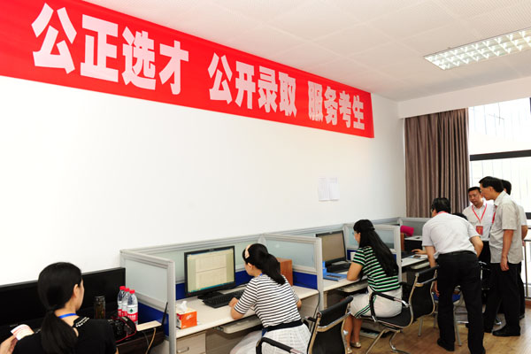 7月25日,党委书记王成端率党委副书记侯忠明、办公室主任涂德祥等深入万象城2017年招生录取现场看望慰问工作人员,检查指导招生录取工作。