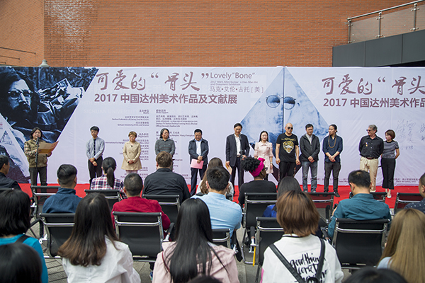 5月9日下午,可爱的骨头———马克·艾伦·古拖2017中国达州美术作品及文献展在莲湖校区艺术传媒楼广场隆重举行。