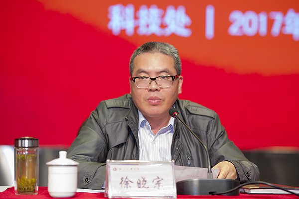 副校长徐晓宗宣读《关于表彰 2016 年科研工作先进集体和十佳科研工作者的通知》
