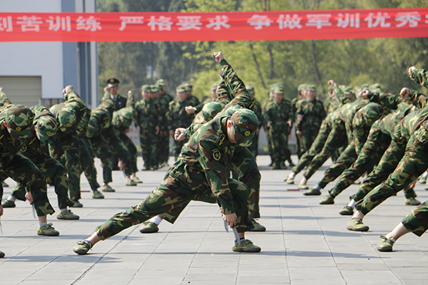 今年,学校首次采用校外施训的方式。全校3171名2016级新生先后分三批次进入达州市国防教育训练基地进行为期9天的全封闭、准军事化训练。借助基地的资源优势,学校对军训课程的内容进行了大胆创新,设计了军事技能、军事理论、文化活动、特色科目四大类别,共计十九门课程,尤其是战术旗语、战术手语、战地救护等特色科目的开设,极大地拓展了军事训练的广度和深度,增强了学生的体能,培养了学生奋勇向前,不怕吃苦的精神品质。