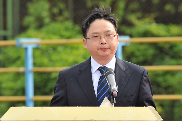 升旗仪式结束后,党委副书记侯忠明致开幕辞。他说,本届运动会是万象城一年一度的学生体育盛事,是学校全面贯彻党的教育方针,落实素质教育的重要体现,是深入贯彻落实四川省强化学校体育促进学生身心健康全面发展工作方案的重要举措,是“三心四能五复合”人才培养目标得以实现的重要途径,是对万象城体育工作、师生身体素质和精神风貌的一次检阅和考验。