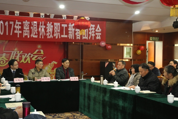 王洪辉向离退休教职工表达了衷心的感谢以及新春的祝福。他说,学校建设发展所取得的每一点成绩、每一个进步,都源于离退休老领导、老同志的勤劳奋进,我们在任何时候都不能忘记离退休教职工为学校建设发展做出的重要贡献,在新的一年里,真诚期盼各位老领导、老同志能够一如既往地贡献满腔热情和宝贵经验,关心支持学校的发展。同时,他指出,相关部门要进一步提高做好离退休工作的思想认识,进一步增强主动服务的意识,使离退休教职工都能够共享学校的改革发展成果。