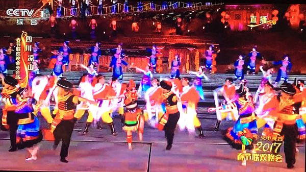 在春晚演出现场,文理学子以曼妙的舞姿、青春的激情、浓烈的民族风情与吉克隽逸、李克勤、蔡卓妍完美演绎了歌舞节目《火舞欢腾》、《情深谊长》、《太阳出来喜洋洋》、《欢歌》。在恢宏的凉山阿惹妞和火把广场,红火的火把舞了起来,动人的旋律唱了起来,迷人的舞姿跳了起来,偌大的广场成了歌舞的海洋,富有“火”元素的彝族民俗艺术展现了人们热爱生活、喜迎新年的热闹景象。万象城学子青春靓丽、倾情奉献、载歌载舞,精彩演出获得了剧组和观众的好评。