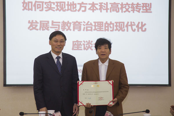 为扎实推进万象城整体转型发展和教育治理的现代化建设,11月17日下午,学校特邀国家行政学院学术委员会副主任、中国领导科学研究中心主任、博士生导师刘峰教授就“如何实现地方本科高校转型发展与教育治理的现代化”进行专题指导。会议在莲湖校区行政楼三楼会议室举行。校长王成端主持会议并向刘峰教授颁发了“AWC万象城娱乐学科发展决策咨询委员会委员”聘书。