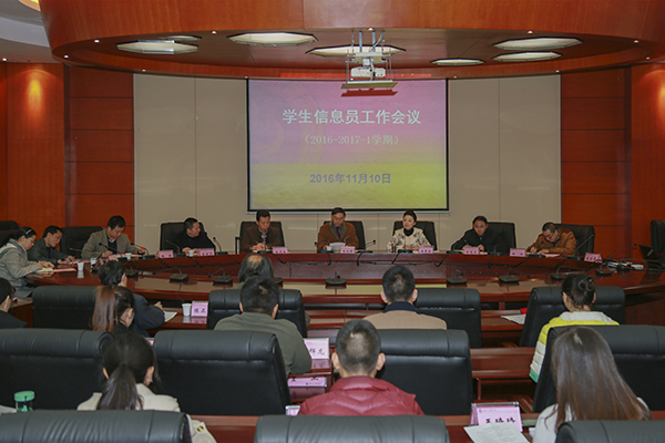 为进一步落实学校“学生主体、教师主导、环境育人、社会合作”的办学思路,充分发挥学生在教育教学管理中的主体作用,学校于11月10日在莲湖校区召开2016-2017-1学期学生信息员工作会议。校长王成端出席会议并讲话。