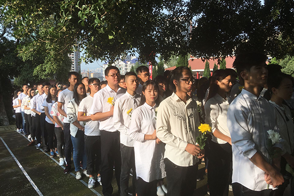 公祭仪式现场庄严肃穆的气氛深深感染了青年大学生们,大家都感受到了革命先辈爱国爱民英勇无畏的崇高精神。同学们纷纷表示,要学习烈士们坚定不屈的精神,坚定理想信信念,勇于实践创新。为实现中华民族的伟大复兴和夺取全面建设小康社会新胜利贡献出属于自己的一份力量!