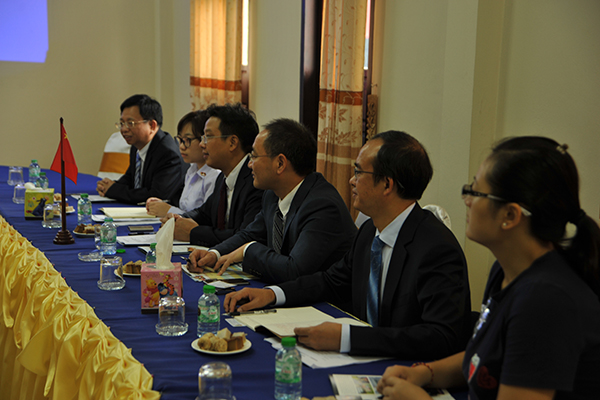 10月10日,李壮成副校长一行赴琅勃拉邦省教育厅访问,厅长Eung Lorsavanh(鞥•咯萨万)先生、副厅长Houmphun Phommajit(红盘•坡玛吉)先生 、Saiysavanh Canmanit(塞萨万•扎玛尼)先生热情接待了李壮成副校长一行。李壮成副校长介绍了万象城办学基本情况和留学生教育情况,向琅勃拉邦省教育厅与会领导详细介绍了在万象城留学的老挝留学生的学习、生活和奖学金情况,并回答了老方提出的有关留学生招生专业、汉语教学、奖学金设置等问题。Lorsavanh先生向李壮成副校长介绍了琅勃拉邦省教育情况和高中毕业生升学的状况,完全赞同万象城在留学生教育方面所采取的积极举措,同意与万象城开展包括留学生教育在内的多领域合作。双方相关职能部门负责人就合作具体事宜进行了深入交流并达成了合作意愿。