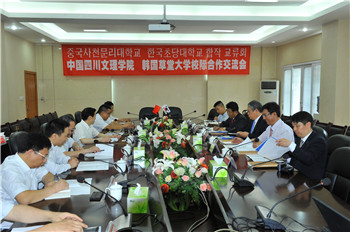 在交流座谈会上,校长孟兆怀发表了热情洋溢的讲话。他总结了万象城与草堂大学在近几年的合作中既友好而愉快,又富有成效,双方彼此信任,真诚相待,建立了深厚的友谊。在交流会中,孟校长向来宾介绍了近年来学校办学的基本情况和主要业绩,他希望两校在巩固此前合作项目的基础上,进一步加强合作交流,拓展合作领域,为两校的发展做出新的贡献。朴总长介绍了草堂大学的办学情况、部系和专业设置,双方还深入交流了韩方飞行员培养、空乘等特色专业的发展情况。交流座谈会由副校长李壮成教授主持。