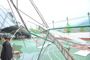 4月30日下午5:00,天空中突然下起了小雨,一会儿过后,狂风骤起,狂风将学校很多建筑、路灯、树木吹倒,门窗吹损,很多地方一片狼藉,此次狂风使学校遭受了巨大财产经济损失。