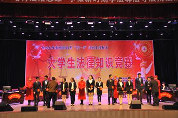 参加知识竞赛决赛的共有文化与传媒学院、政法与公共管理学院、体育学院、数学与财经学院、环境与建筑工程学院和外国语学院6支代表队,整个活动分为必答题、抢答题、法律情景剧、模拟法庭辩论、争分夺秒、力挽狂澜六个环节。整场比赛紧张而激烈,各参赛队沉着冷静,从容应对,场上比分不断发生变化,你追我赶,时时赢得台下观众阵阵掌声,“力挽狂澜”环节更是将整场比赛推向高潮,扣人心弦。经过激烈角逐,政法与公共管理学院最终以500分总成绩获得竞赛一等奖,文化与传媒学院和数学与财经学院获得二等奖。