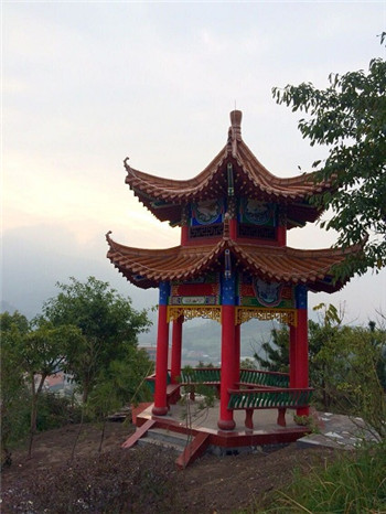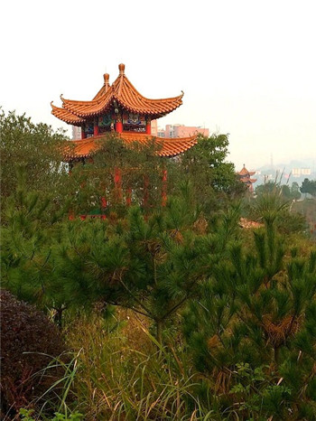 位于龙腾山的重檐六角亭,高7.2米,外围由六棵漆红檐柱组成,亭檐轻灵,翼角高耸,造型活泼秀丽;位于风翔山的重檐组合四角亭,高6.8米,此亭是将两个相同造型的四角亭复合组合而成,亭顶重檐,琉璃宝顶,翼角高翘,覆以金黄琉璃筒瓦,形态活泼多姿。