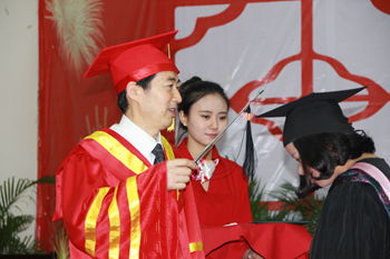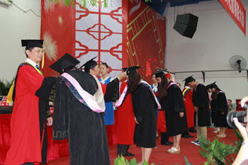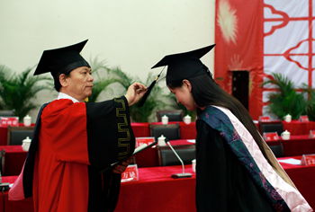 最后,获得学士学位的同学依次走上主席台领取学士学位证书并由学校领导逐一授位。
