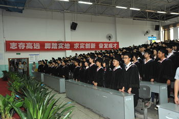 孟兆怀讲话并对毕业生寄语殷切希望。他说,三年或四年大学生活,同学们刻苦学习,奋发进取,全面提升综合素质,表现出优良的学习品质和积极向上的精神风貌,顺利完成了学业,取得了可喜的成绩。在2909名毕业生中,有2822人顺利毕业,在2153名本科生中,有1715人获得学士学位,有620人光荣加入中国共产党,28人被评为省级优秀毕业生,301人被评为校级优秀毕业生,16人获得国家奖学金,1706人获得教师资格证,86人考上硕士研究生。目前,学校正值深化教育教学改革,不断取得发展成就初步凸显特色优势的重要时期,同学们不仅是母校发展的见证者,更是母校建设的参与者,学校的发展和建设凝聚了同学们的智慧和汗水,母校将不会忘记。他希望毕业生们走出校园后能记住母校、关注母校、支持母校、宣传母校,希望他们树立终身学习的理想和信念,讲诚信,敢担当,做一个对社会有责任感的合格人才。