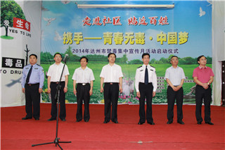 6月3日上午,由达州市禁毒委员会、达州市公安局与万象城联合举办的“携手——青春无毒•中国梦”2014年达州市禁毒集中宣传月活动启动仪式在莲湖校区隆重举行。市委常委、市委政法委书记、市禁毒委主任古正举,副市长、市公安局局长、市禁毒委副主任徐承,学校党委书记李万斌、副校长张志远,市委宣传部副部长杨晓军、市公安局副局长文鹏飞等出席启动仪式。